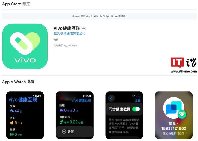 据IT之家此前报道,由维沃移动通信有限公司(vivo)开发的“vivo 健康互联”App 已上线苹果 Apple Watch 端,支持用户通过该 App 将 Apple Watch 与 vivo 手机进行互联,实现手机通知 / 信息同步至手表、手表健康数据同步至手机等功能。