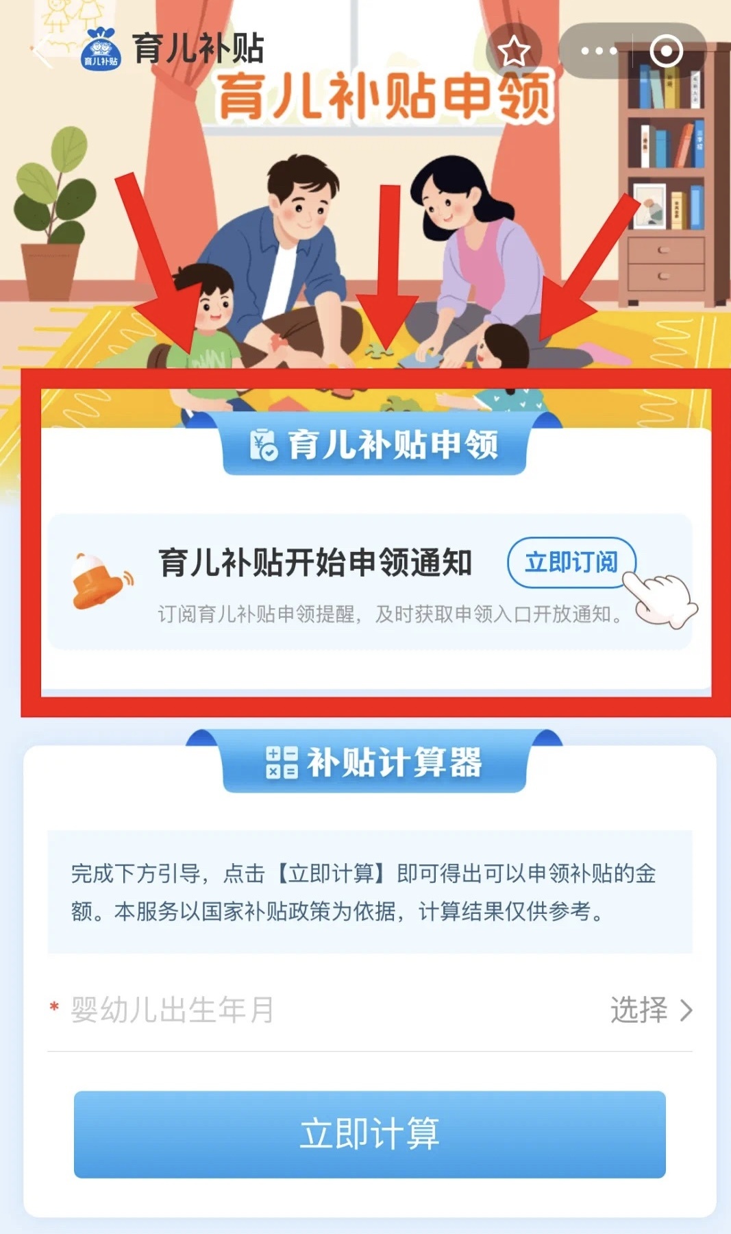 四、在“育儿补贴开始申领通知”处,点击“立即订阅”