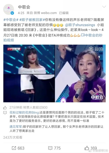 《中歌会》节目组似乎也嗅出了这其中的争议,在25日便早早将其作为节目预告发布在微博上。不少人围观表达自己的看法。