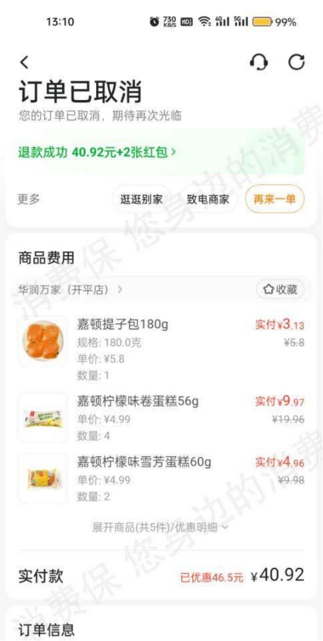 谭女士在消费保平台投诉称,她在美团外卖平台遭遇了多次订单无故被取消的情况。并且 2025 年 1 月起,此类问题已发生 5 次。谭女士称,5 月 10 日, 她在平时的购物超市下单了一些食物和生活用品,待下单成功后订单在无任何 告知的情况下被平台取消。她立即通过电话和线上客服向美团反馈,但美团的处理方式让她感到非常不满。美团方面在 5 月 10 日回复称,系统判定她的订单为非正常购物订单,但谭女士明确表示,她购买的都是正常生活用品,如菜、 肉等,并非同一商品,不存在异常下单行为。且此前在华润万家、大润发等店铺的订单均有此类情况发生。