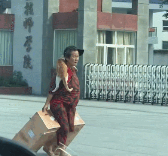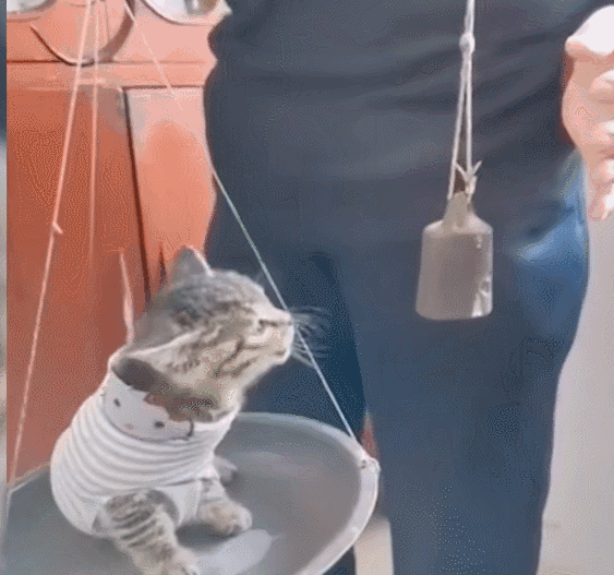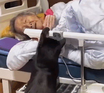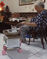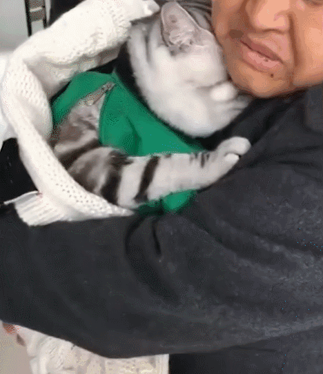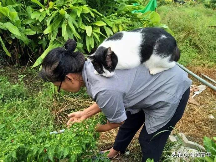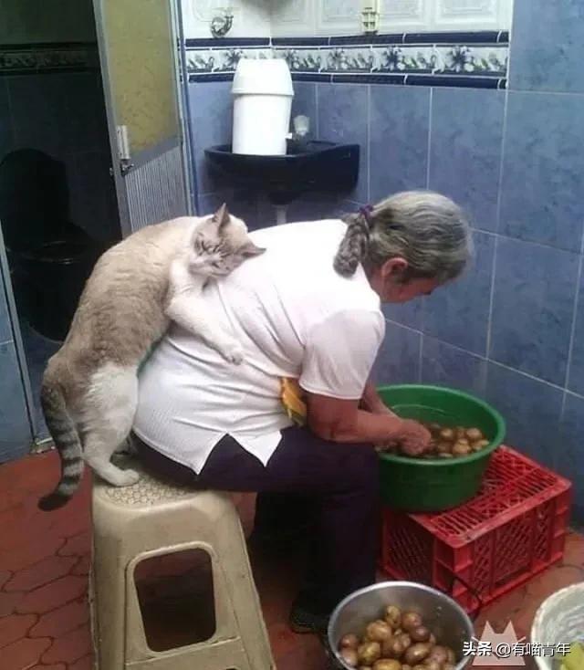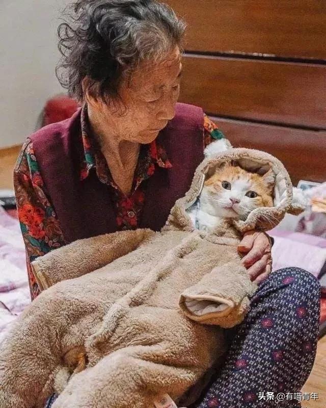 不知是奶奶逗猫,还是猫猫逗奶奶。