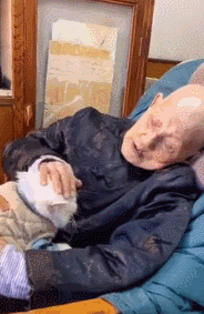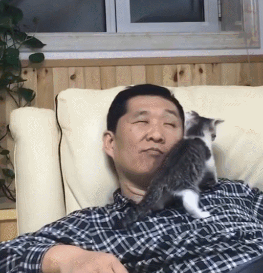 爷爷下撇的嘴角驱散了猫咪心中的雾霾