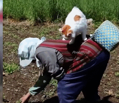 奶奶喂猫吃吃吃吃吃,猫:这是我最后一顿吗?