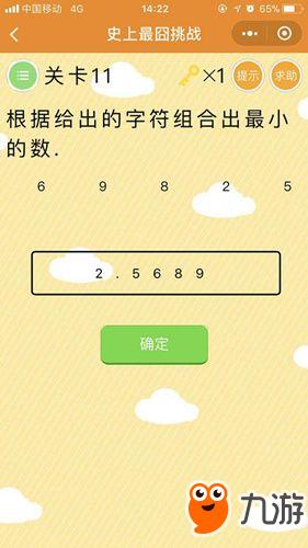 注意利用题目后面的小点“.”,组合出来最小的数就是:2.5689