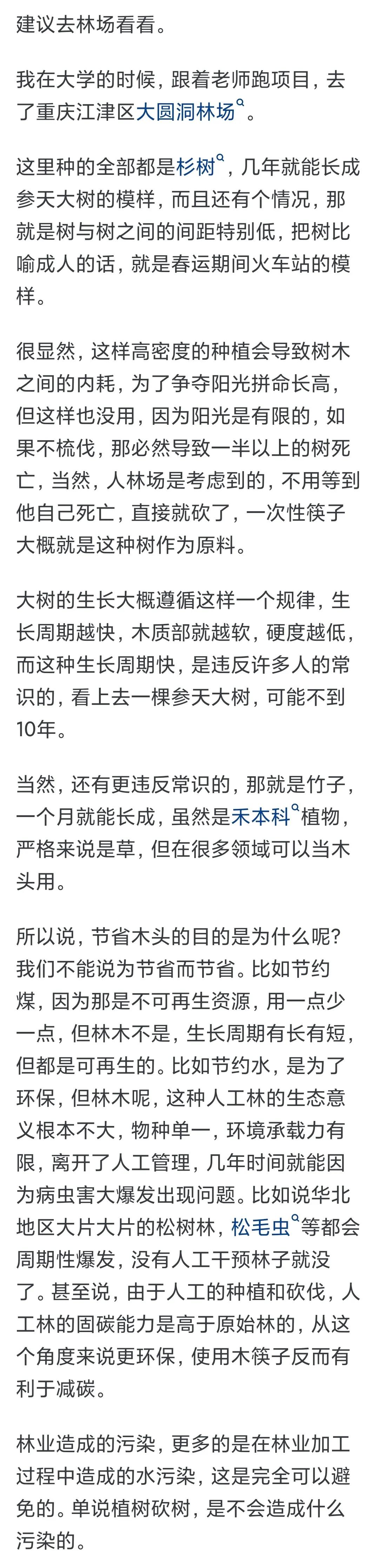 木筷子是用速生林做的,长得超级快,生态这玩意现在大家不烧柴烧煤了立马就好了。