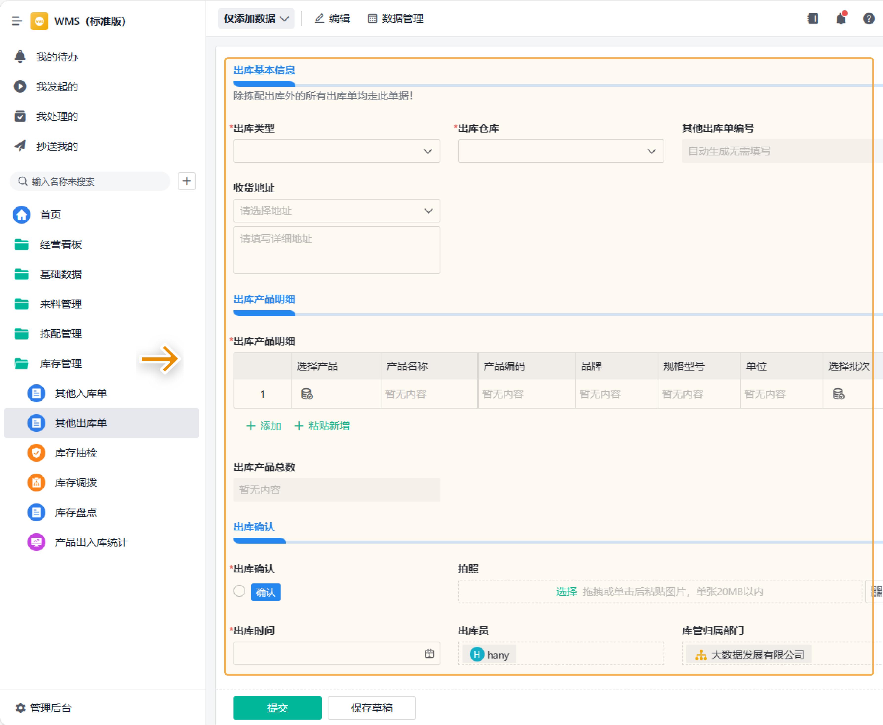 4. 出库管理: