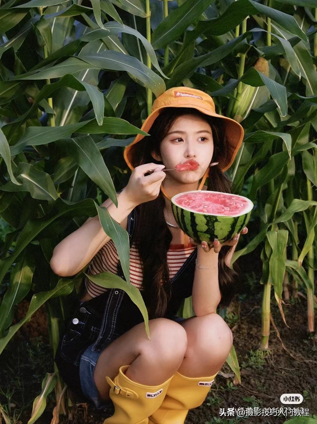 以玉米地为背景,近景,远景,中景,半身照,全身照,站着拍,坐下来拍,多拍几组,挑选照片时更有选择性。