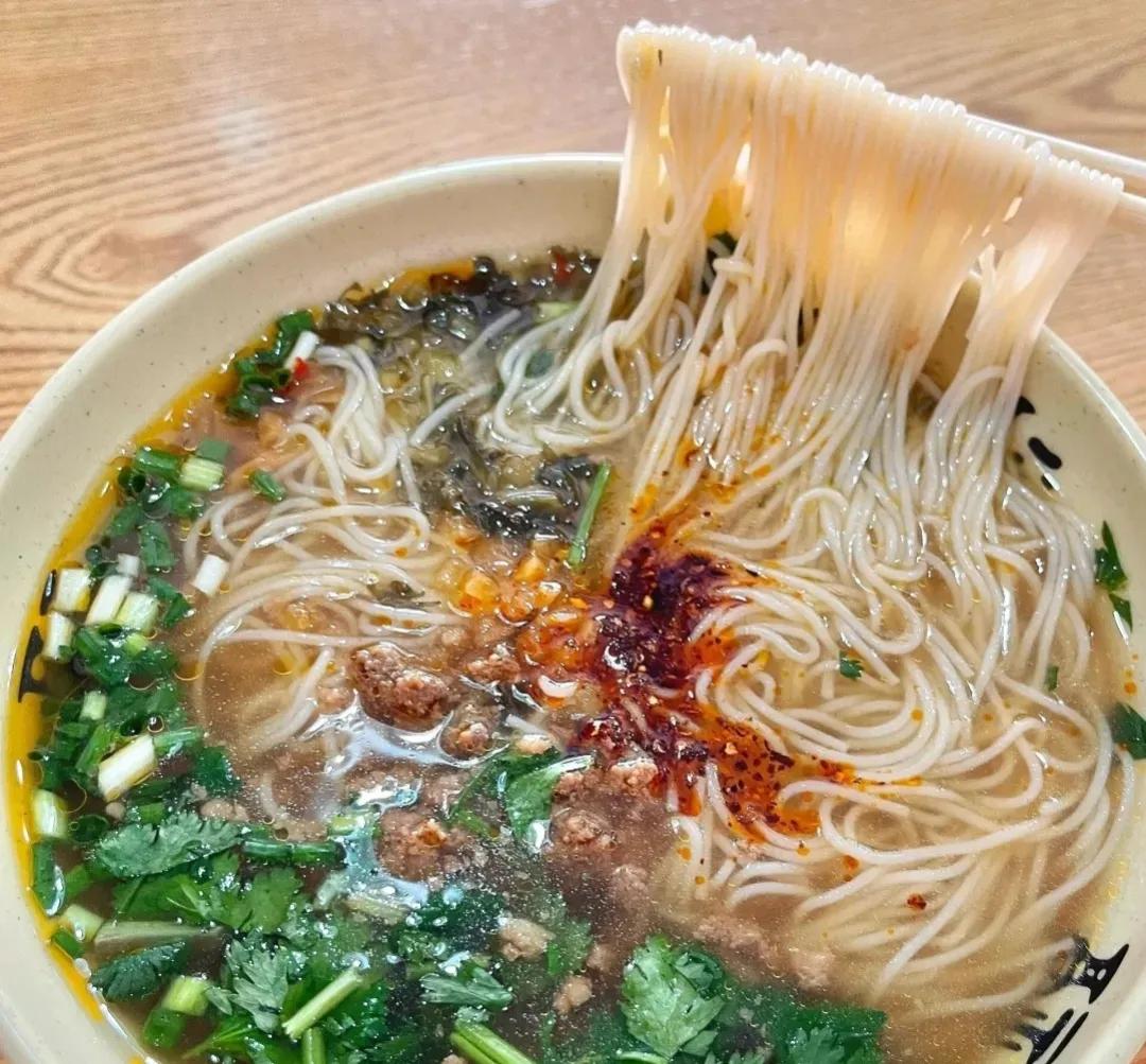 淮北烫面面条很细很细,吃了一口很滑溜还有筋道,没想象的那么软,里面还有肉沫,这应该是老板的秘方了,吃起来巨香哈,还有那羊油辣椒,这可是别的地方吃不到的,想一想都流口水,真想马上就吃上一碗解解馋。