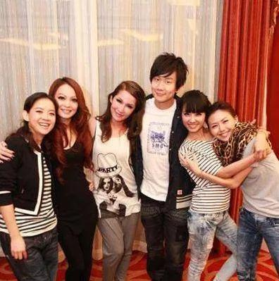 潘玮柏、江美琪、吴克羣,以及蔡依林念书时的六位女同学