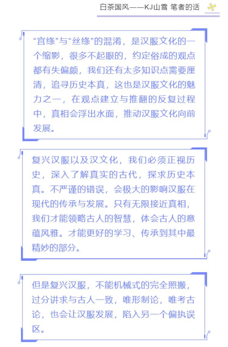 宫绦是我们最常见的汉服腰间系带,人手一条应该不算过分吧。大家都这么叫,算是约定俗成的称谓。谁也不会在意,谁也不会深究。“宫绦”与“丝绦”的混淆,恰恰是汉服文化的缩影,还有多少不起眼的,约定俗成的知识,有失偏颇呢?