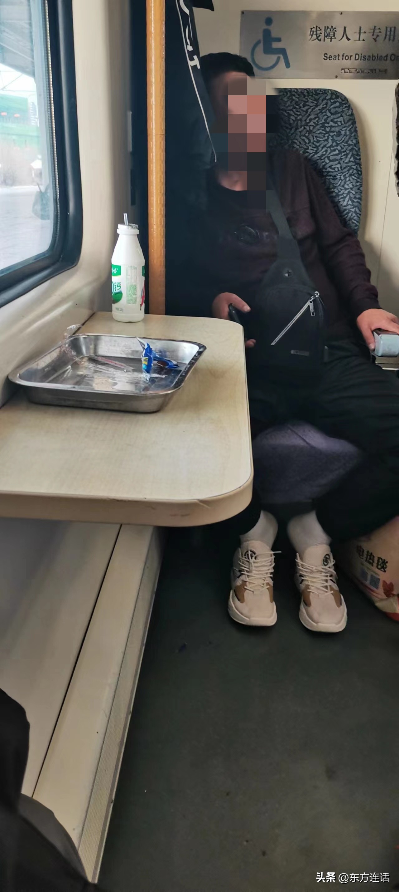 上车坐下以后又有乘客来,才知道自己坐错了车厢。回到正确位置上,惊喜地发现是残疾人专座周围有很大的空间的车厢开头的位置,靠窗的位置。这种车厢一头有很宽大的空间的车厢少之又少,至少不是每节车厢都如此,在这列大多都是卧铺的长途列车上仅有的几节硬座车中,这一节可能是唯一有这种设计安排的车厢。
