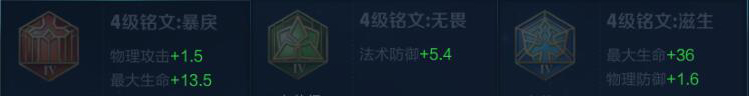 符文思路:一个主攻击,一个主生命,一个主护甲,分别针对于吕布的前期伤害、恢复效率和前期抗性。真实伤害的情况下每一点攻击都变得十分珍贵,利用率为100%而不像普通物理伤害一样利用率只有70%—30%;吕布的恢复效果都是依据已损失生命值的,你的最大生命值越高,每次恢复的数值就越高!并且增加最大生命值效果也会增益反伤刺甲,造成更高的反伤!护甲依然是为了前期护甲值对于物理抗性爆炸的增长率而选择的,不需要任何护甲穿透!拥有这些就可以让吕布成为真正的前期霸王!和后期的推土机。