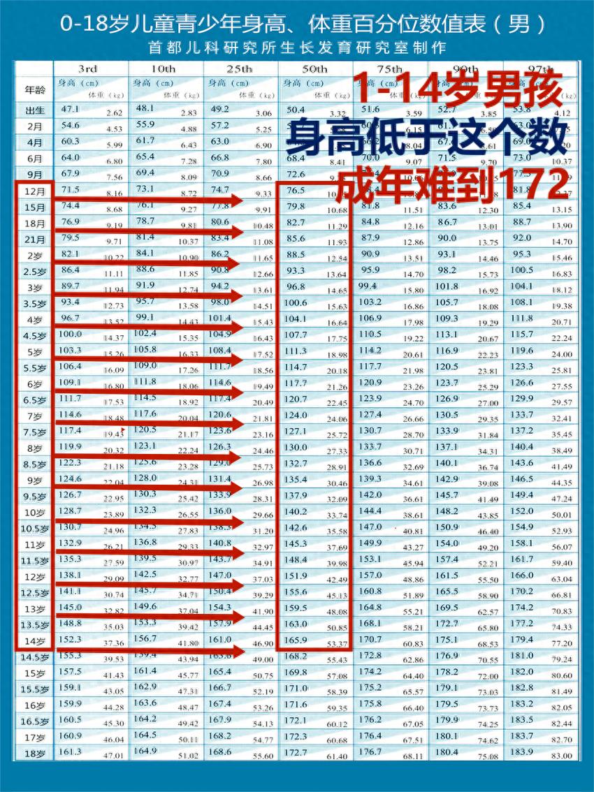 1-14岁男孩,身高低于这个标准,成年可能长不到172!