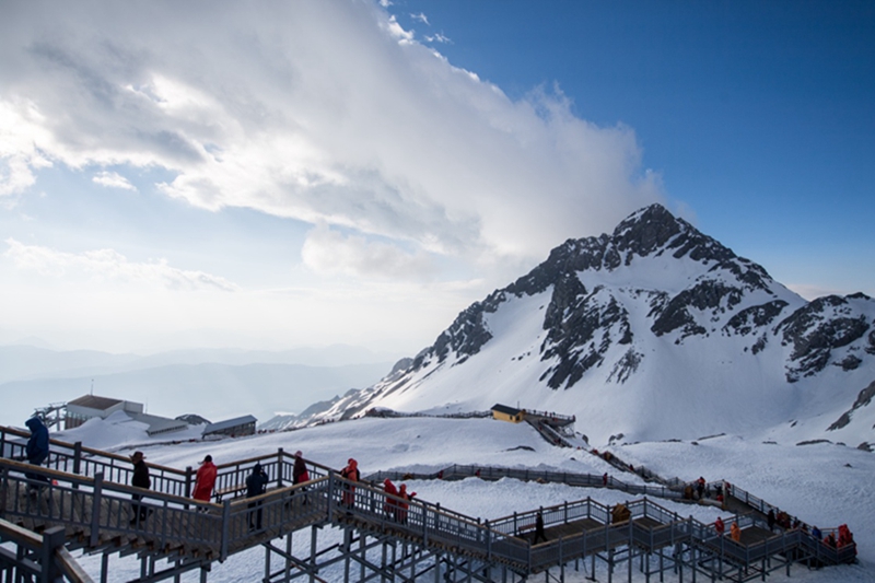 攀爬珠峰的要么是国家科研人员,要么就是登山运动爱好者。相比之下玉龙雪山既不存在领土主权问题,又不具备测量珠峰那样的科研探测价值,所以国家不愿让登山队员冒着危险去登顶。那些喜欢挑战极限的民间登山运动爱好者又对攀登这座可以全程无氧攀登的低海拔山峰缺乏兴趣,所以玉龙雪山更适合普通老百姓当成一个旅游胜地去游玩。玉龙雪山作为云南5A景区每年都会招待不计其数的游客。这些游客当然不可能人人都会攀岩,所以景区就修建了可以直达海拔4680米处的大索道。