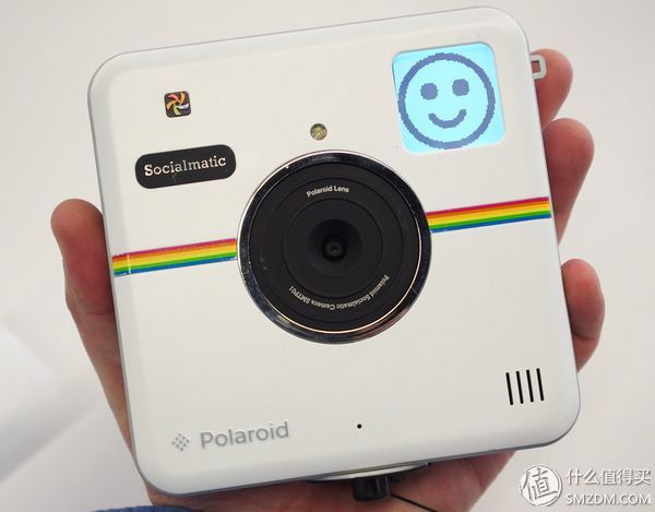 Socialmatic原本是Polaroid在2014年CES上展出的一款概念产品,由于酷似Instagram,所以一经放出便获得了超高的关注度,实际产品最终在14年底推出,外观以宝丽莱经典彩虹机为设计原型,并搭载了一个运行Android的智能模块,使用摄像头拍摄后可使用智能模块修改后进行打印,Socialmatic正面右上角还有一个黑白屏叫做Mood Assistant,可以显示当前测光情况、天气、工作状态,以及QR Code等自拍提示。配备了1400万前置 + 200万像素后置摄像头,使用2"x3"尺寸的Zink相纸进行打印。虽然超高的颜值令Socialmatic备受关注,不过摄像头素质较低,Zink相纸色彩不足,以及3*13.2*13.2厘米的肥硕体型,令不少人望而却步,是否要为了颜值而接受性能上的不足,就看各位的取舍了。
