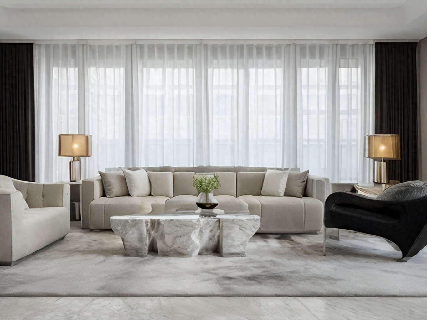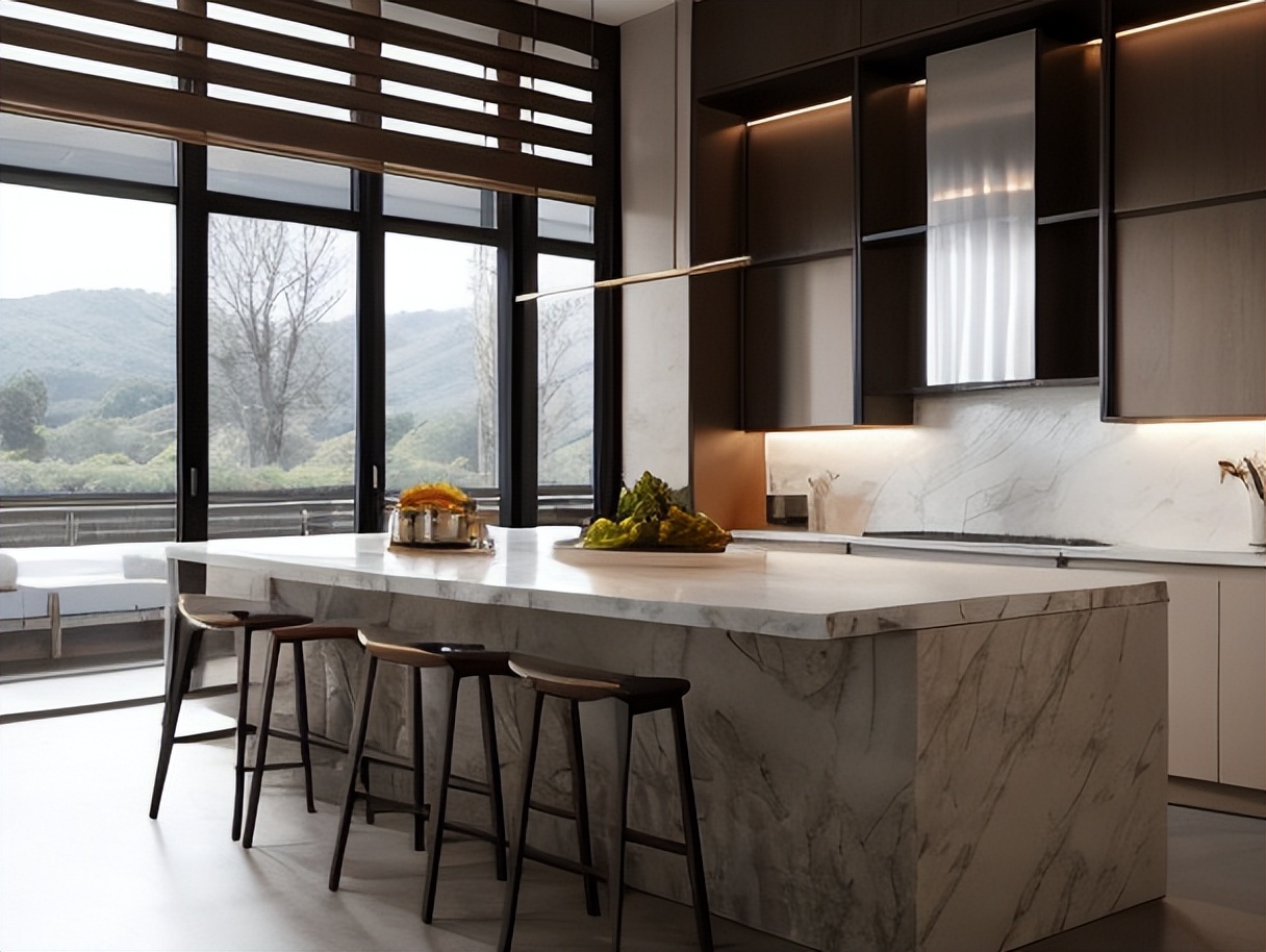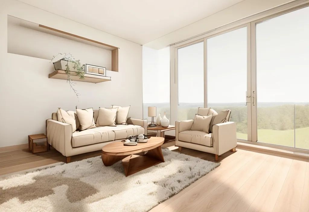 ③ 生成文案可根据多个维度进行,空间类型+材质+颜色基调+需要的家具+灯光照明+外景地区