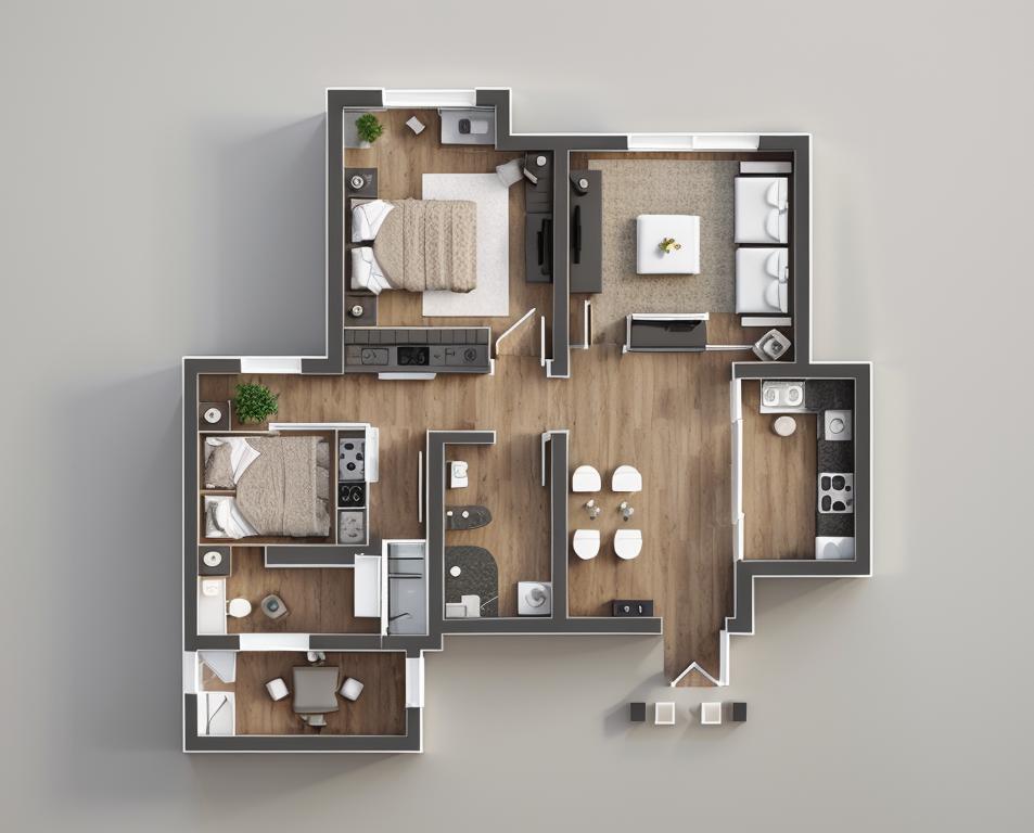 彩平图必备关键词:公寓布局的渲染平面图,详细,顶视图,白色背景,杰作,极其详细,最佳阴影,(跑1024及以上大图推荐开)