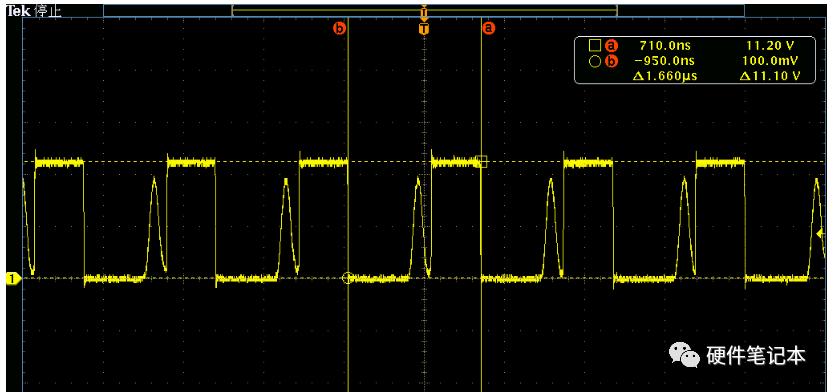 实测开关频率为1.66us(602KHz),更接近了,我更加相信了自己的判断。