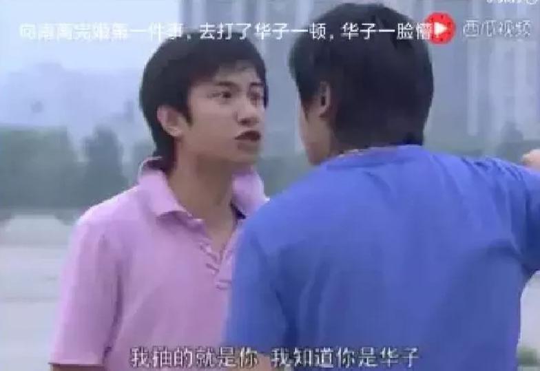 将华子这个梗带火的,正是前边那个留着牌牌琦同款发型,上身T恤无论黑白都得紧身带条龙的著名“街(gai)溜子”李会长。