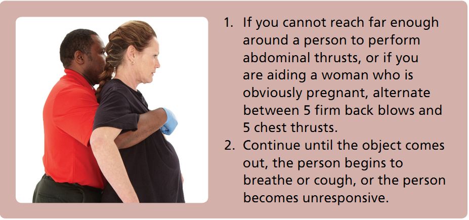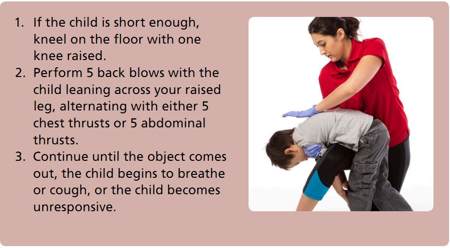 5次拍背,然后5次胸部冲击或5次腹部冲击,以此重复。