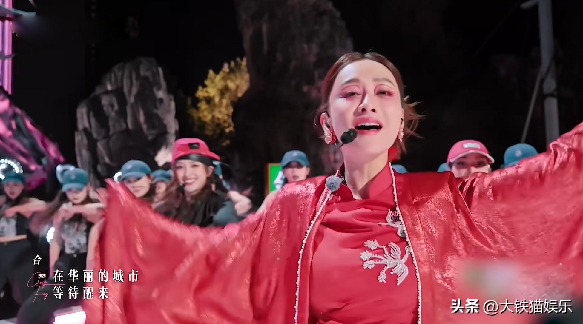 二公时跟吴宣仪等一起表演《本草纲目》,练习的时候队员哄着都不努力,上台后全程划水,穿件红色披风,像冷宫里的疯妃随意甩甩袖子,与其他队员格格不入,也应了同期歌词:我表情悠哉,跳个大概。