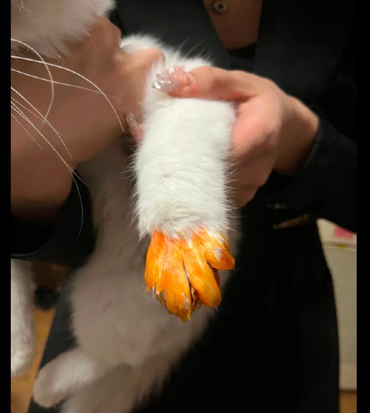 网友赶紧过去把猫爪子给拿出来,不过它的爪子已经被染成了辣椒色了!还好没有让它到处乱摸,要不然清洗可就麻烦了。而且猫咪也不能吃辣椒,否则它肯定会发疯的!没办法,现在只好去给猫咪洗爪子了,螺蛳粉也是不能再吃了!