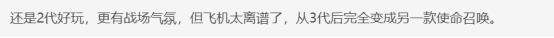 有玩家表示“还是2代好玩,更有战场气氛,但飞机太离谱了,从3代后完全变成另一款使命召唤。”