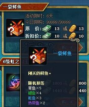 本次活动和消费送尾鸣碎片是一样的。消耗体力送鱼,还有花费元宝和点劵购买。购买在商城的限购。