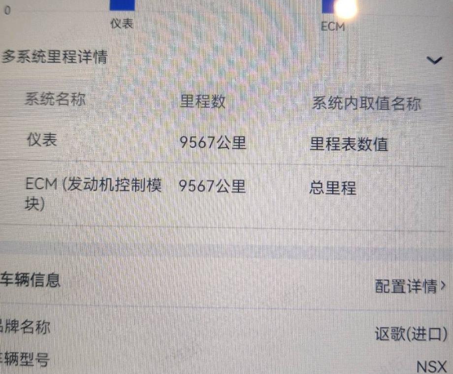 读取车辆的公里数数据,没有异常情况,和表显的9千多公里对得上,结合内饰的磨损来看,可以排除调表嫌疑。