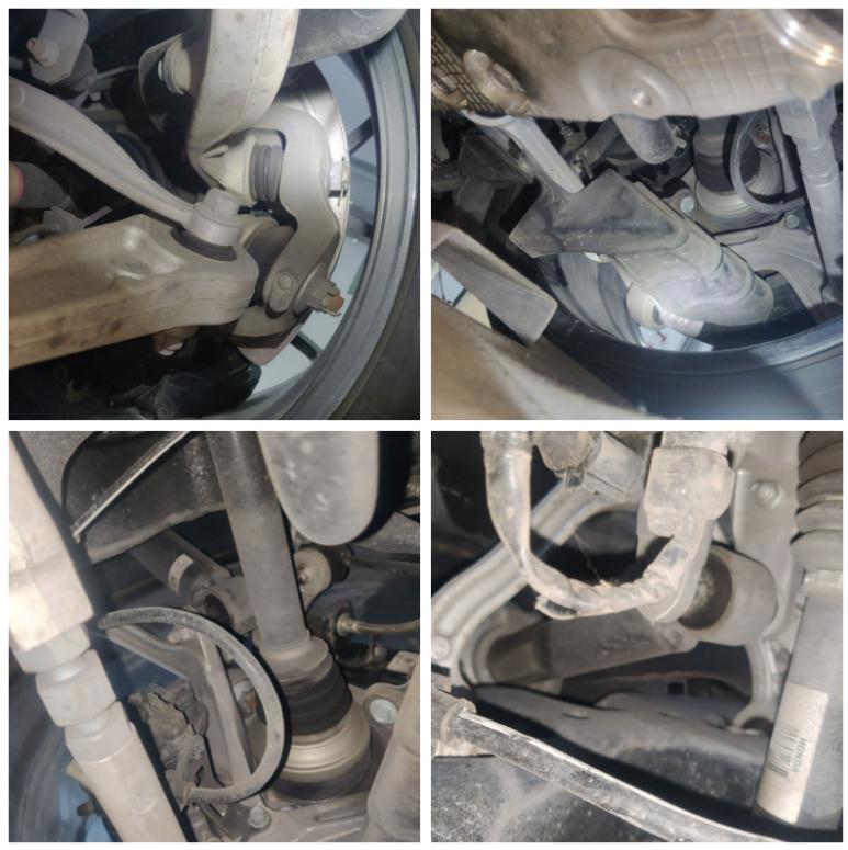 最后把车升举起来检查底盘,可以看到全车的悬挂减震都没有任何渗漏破损和老化痕迹,底盘的工况还不错。