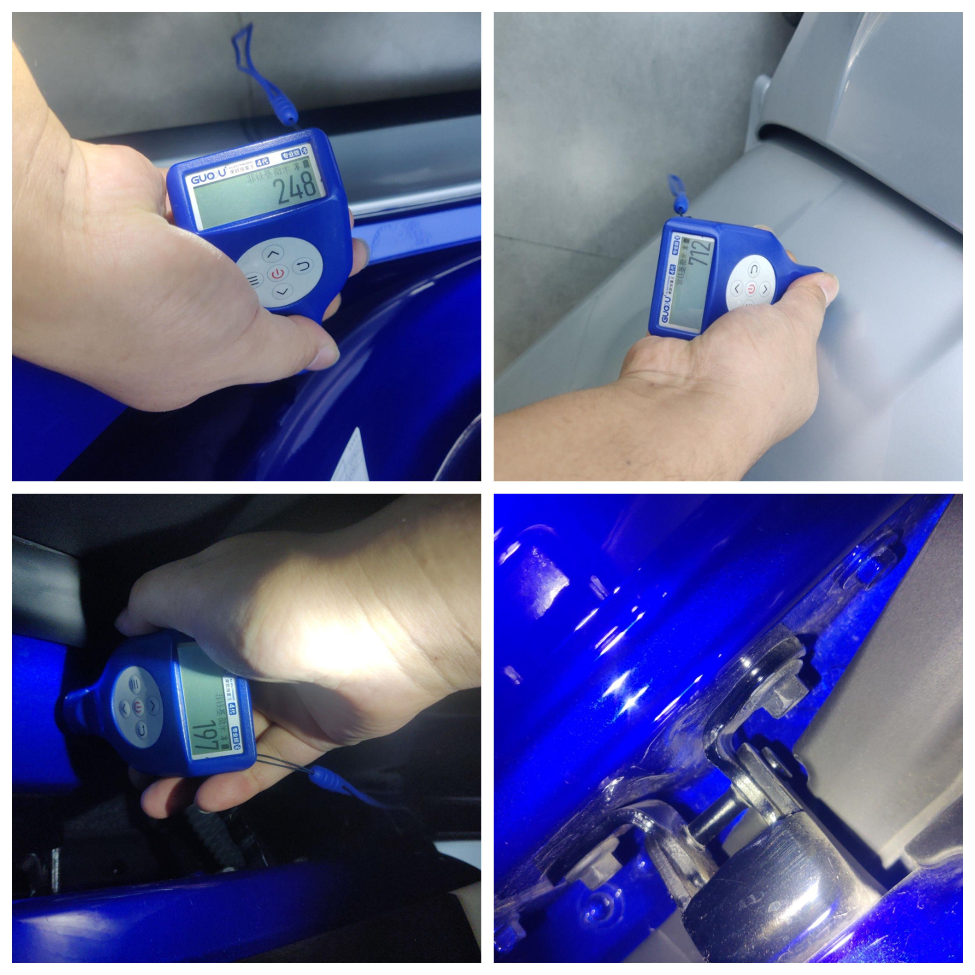由于车尾都是塑料的玻璃纤维就全靠经验分析有没有修复过了,经过我的检测,后尾盖没有拆卸,后尾板也没有重新修复的痕迹,可以排除尾部事故,整个车外观都看完了,只是有三个面数值相差较大,可能漆面存在问题,属于小瑕疵。