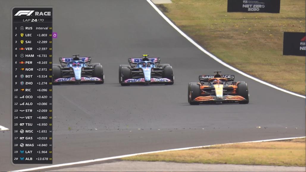 第13圈,诺里斯被佩雷兹超越,再丢一位掉至第七,但他随后选择进站。