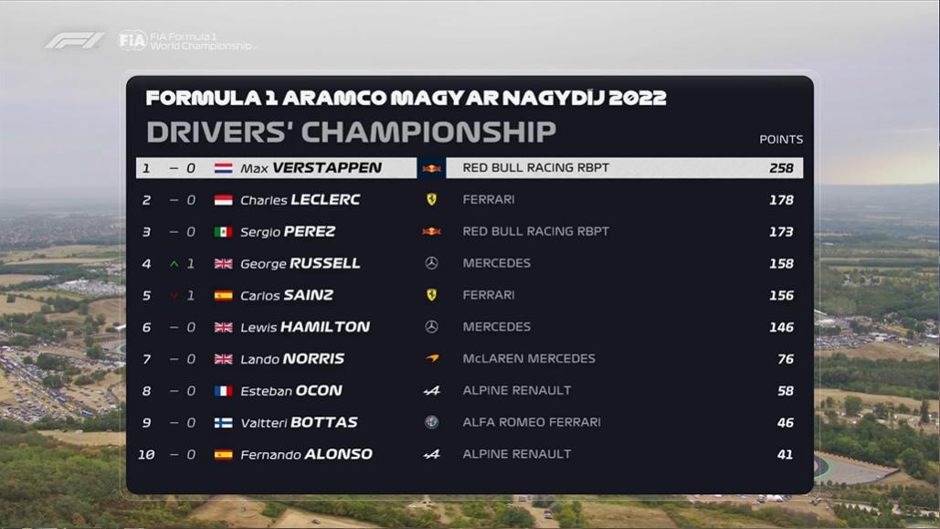 F1匈牙利大奖赛正赛:维斯塔潘翻盘成功!夏休快乐