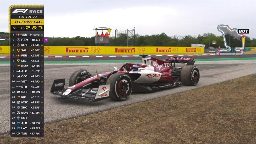 第68圈,博塔斯将赛车停在了路边,赛会随后出动了虚拟安全车。