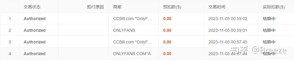 值得注意的是,虽然OnlyFans没有扣费,但是有些虚拟信用卡平台会针对这种0验证或者小额交易扣取一定的手续费,我就为这四笔0验证支付了0.8美元的费用。