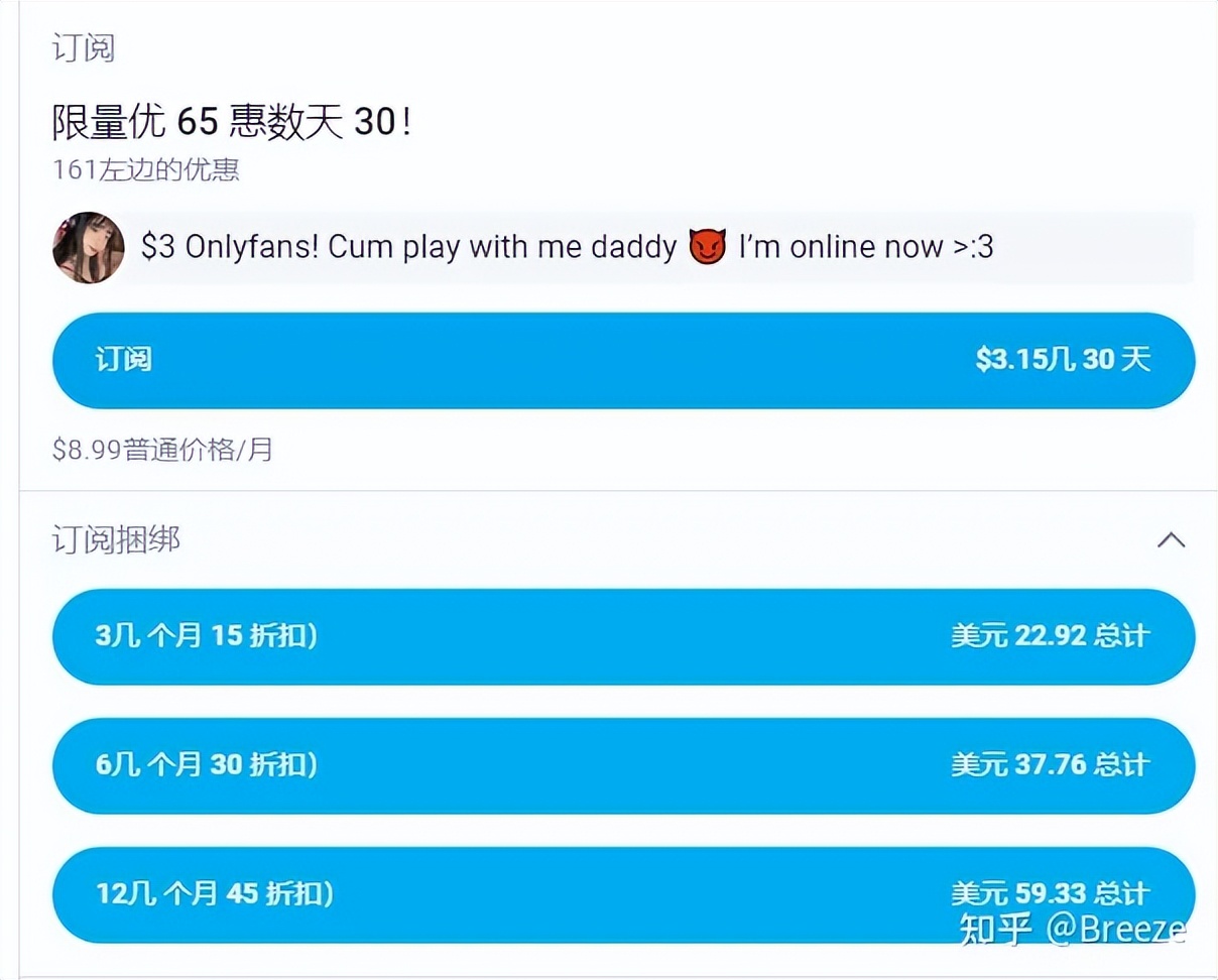 其实OnlyFans上有很多免费的内容,直接点订阅即可,不会扣费,不过绑定信用卡是必须的。当然这些免费的内容并没那么精彩,如果你想看更劲爆的内容,你就得付费。免费的其实都是诱饵。
