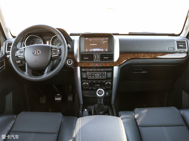 新车的内饰设计同样采用了奔驰G级的设计风格,从图片中可以看出,该车配备了中控大屏,中控台中增加了木纹饰板。
