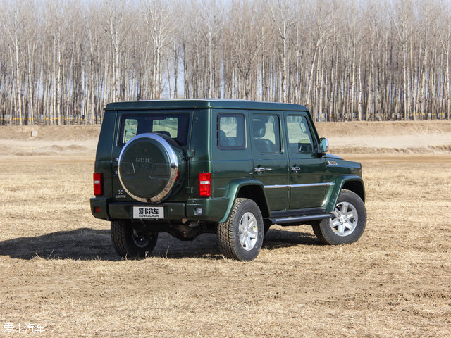北京40L的外观基本与北京40保持一致,只是车身有所加长而已,尤其尾部的BJ40L”标识非常显眼。另外我们看到,新车采用了五门设计。