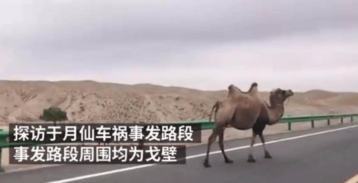 事故发生在内蒙古阿拉善右旗境内的一条省道上,那里长年有骆驼成群结队的出没,车祸发生后依旧能在附近看见骆驼长队。司机当时可能是发现骆驼时来不及刹车,骆驼也一时没有反应过来,这才酿成此祸。