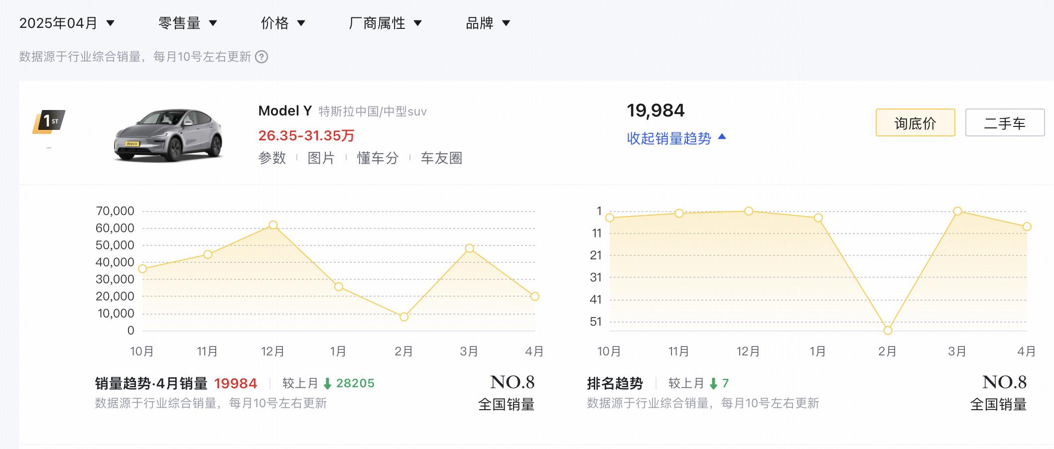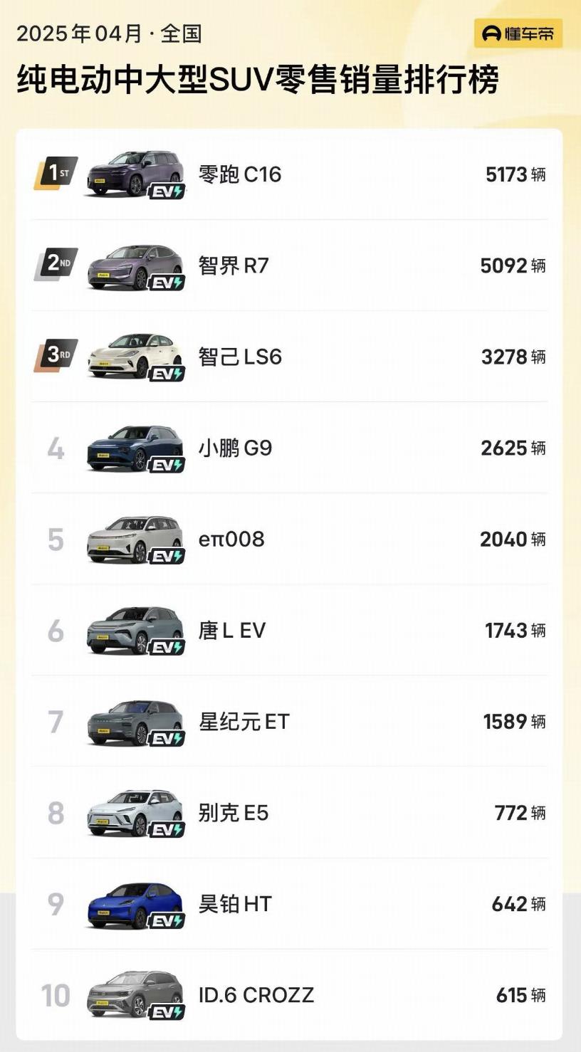 结合销量数据显示,今年4月,在纯电中大型SUV市场,销量前三名分别为零跑C16、智界R7和智己LS6。此外,定位纯电中型SUV的特斯拉Model Y销量为19984辆,相比3月销量有所下滑。相信随着小米YU7的发布,也将给特斯拉Model Y带来不小的压力。现阶段,官方暂未公布小米YU7的具体价格信息,您觉得该车售价会是多少呢?欢迎在文章后留言。
