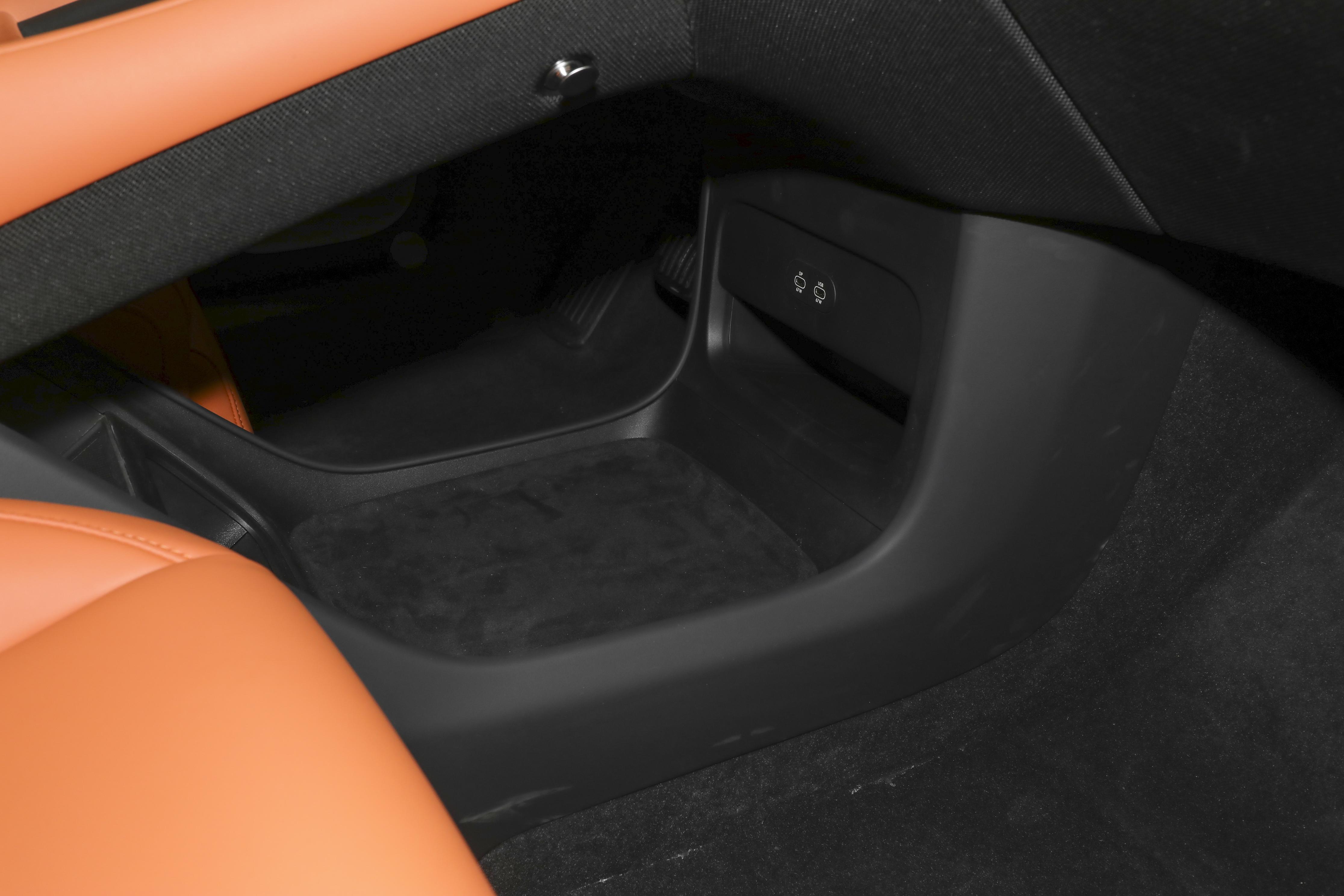 在副仪表台下侧,小米YU7沿用小米SU7的设计,使用镂空的布局,可进一步增加储物空间,并提供USB接口。细节部分,在副仪表台侧面还提供有挂钩。