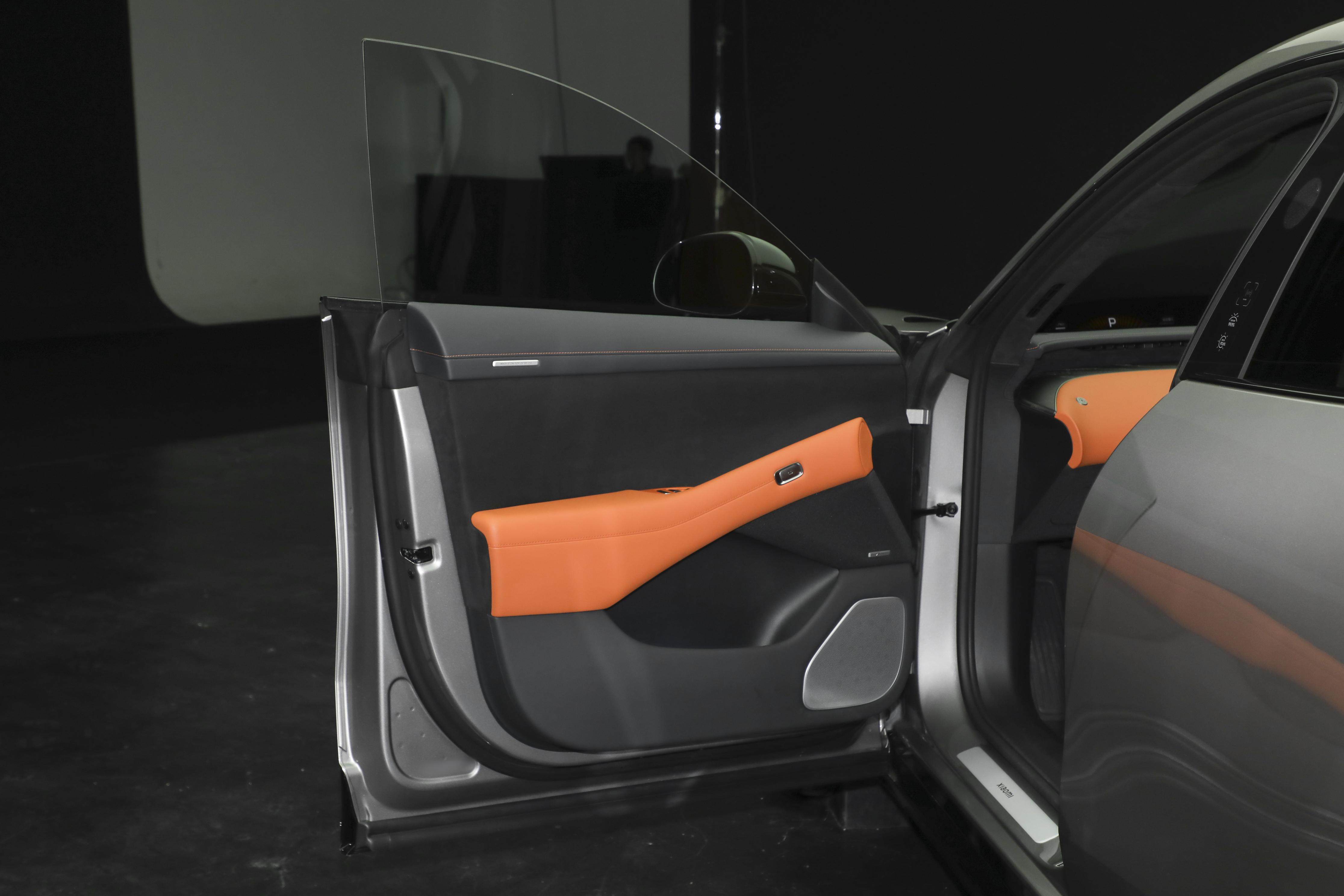 小米YU7继续采用无边框车门设计,并且内侧车门把手相比小米SU7更粗壮,采用按键式开门方式。同时,该车在车门内侧使用翻毛皮和皮质材质包裹,车顶配备皮质拉手。