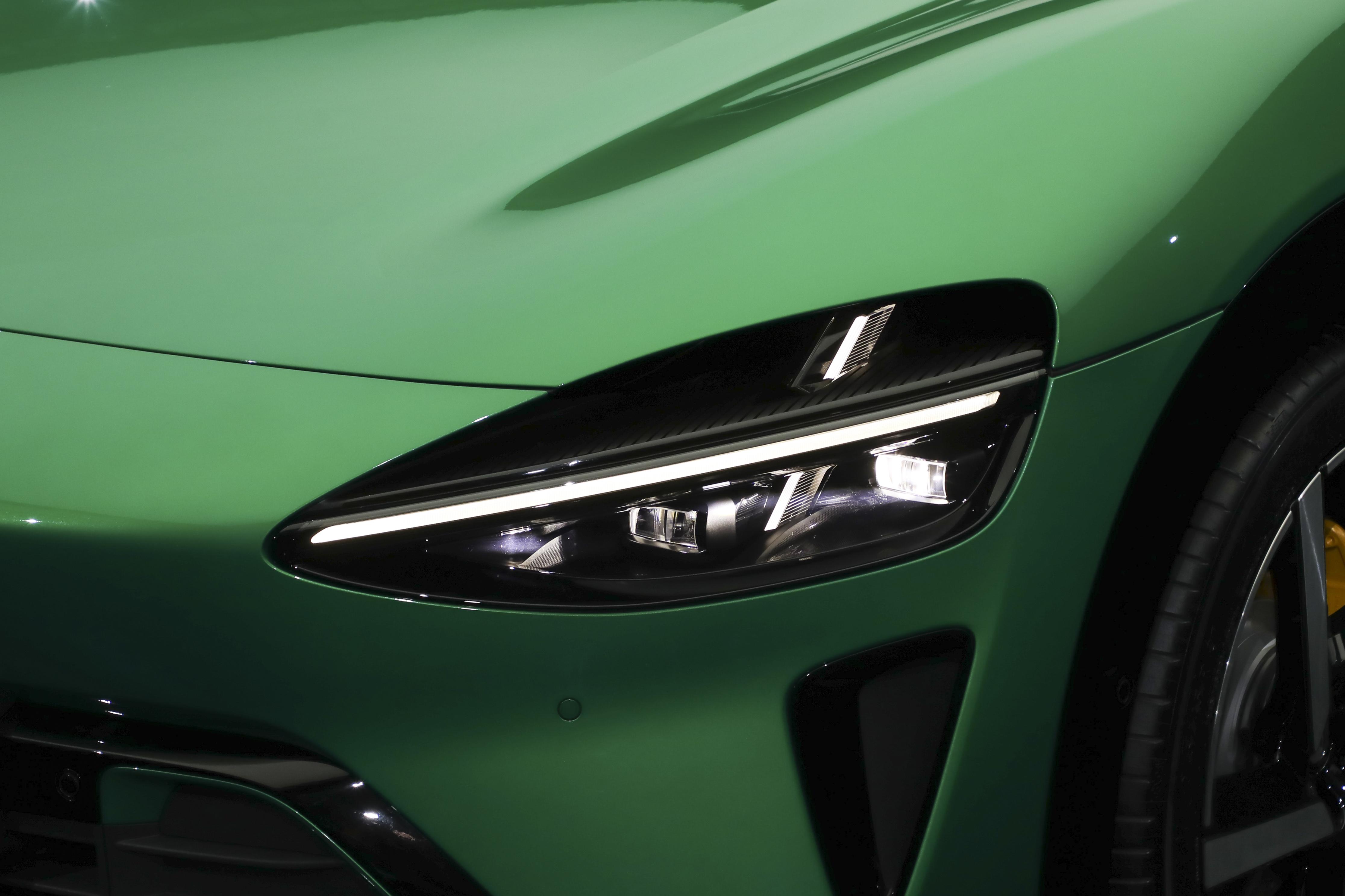 此次实拍图为小米YU7 Max版,车身采用宝石绿外观配色。具体来看,新车前脸整体轮廓与小米SU7基本一致,采用封闭式造型,机舱盖前端为小米银色车标。此外,前包围两侧继续设计有三角形的通风孔,中间位置加入与车身同色的装饰件。