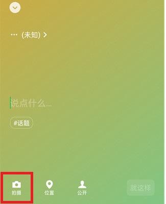 3、接着我们就会跳到未知内容发布页面,在左侧的位置会看到“拍摄”字样,点击进入;
