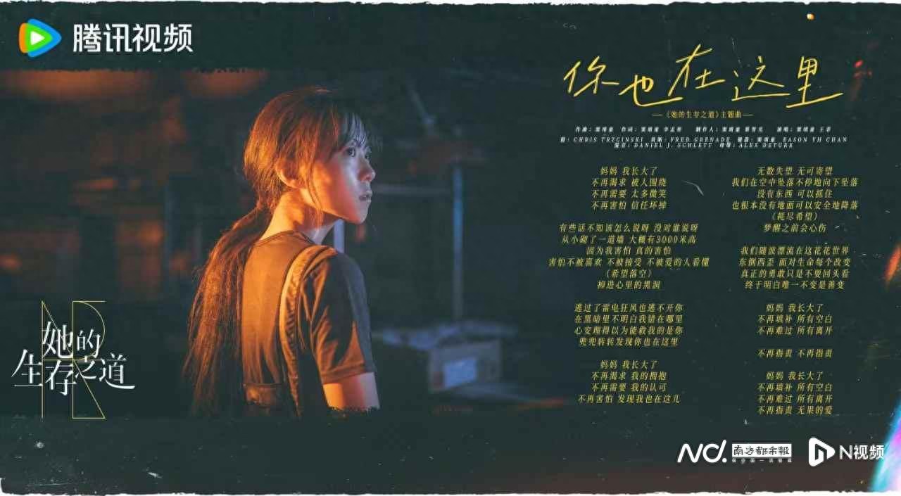 南都讯 记者蔡丽怡7⽉11日,由腾讯视频出品,灵龙文化承制的电视剧《她的生存之道》发布主题曲《你也在这里》MV。《她的生存之道》是窦靖童首次担纲剧集主演的作品,《你也在这里》则由窦靖童作曲,窦靖童与本剧的导演兼艺术总监李孟桥共同作词,窦靖童与音乐人蔡智光联合担任制作人,窦靖童与王菲合作演唱。极具流动感与交互性的画面歌词和风格,呈现出剧集独特的先锋气质和内在表达。