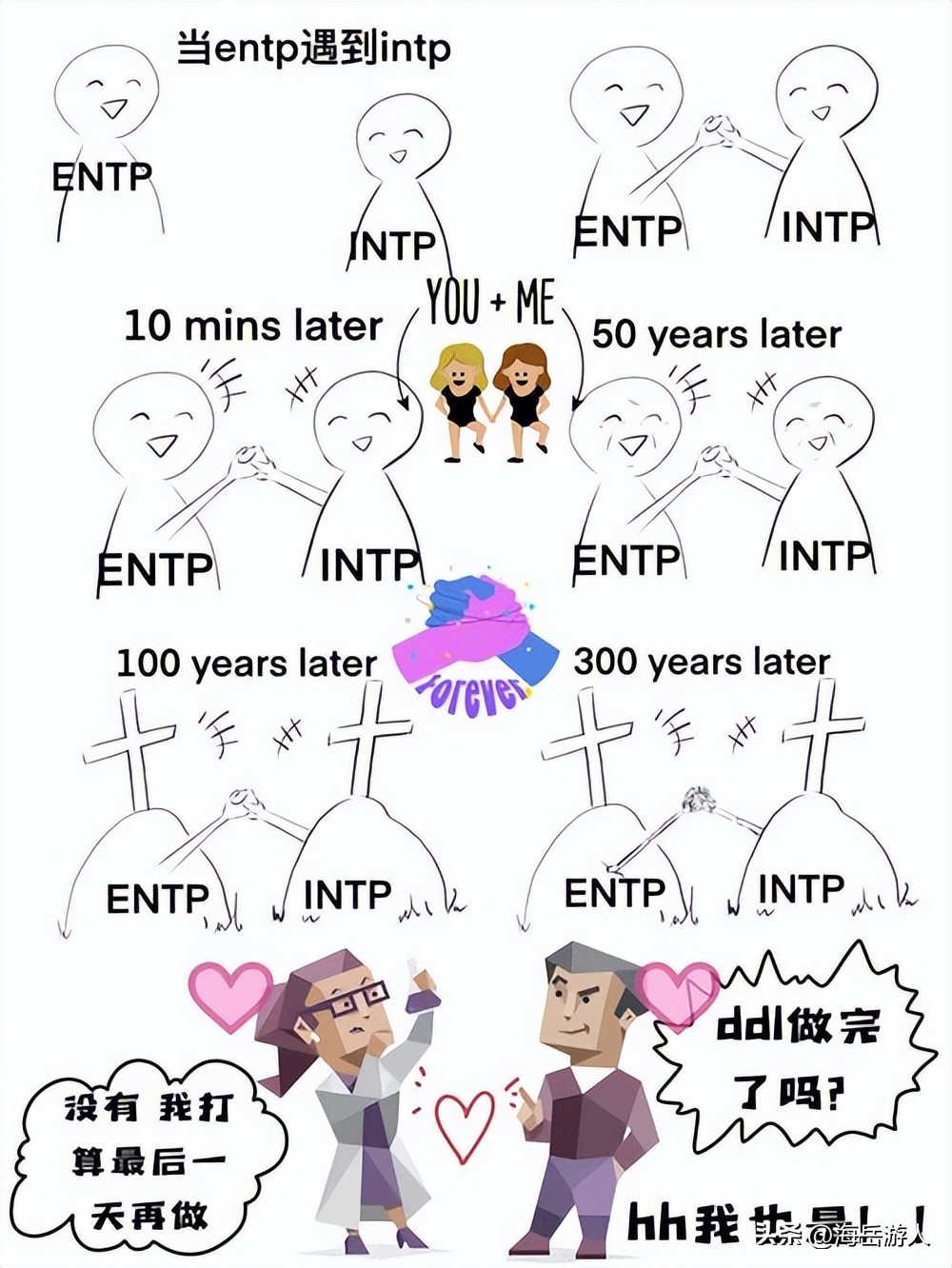 ENTP 之所以被称为最“可怕”的人格类型,并不是因为他们真的可怕,而是因为他们拥有独特的思维方式、沟通能力和情感深度,这些特质使得他们在人群中脱颖而出,成为了引领时代的佼佼者。然而,这些特质也可能让他们在人际关系中遇到困难和挑战,需要他们更加注意自己的行为和影响,尊重和理解他人的感受和需求,才能建立更加和谐和稳定的关系。所以,如果你身边有一个 ENTP 的朋友或同事,不妨多给他们一点理解和支持,因为他们正在用自己的方式改变世界。