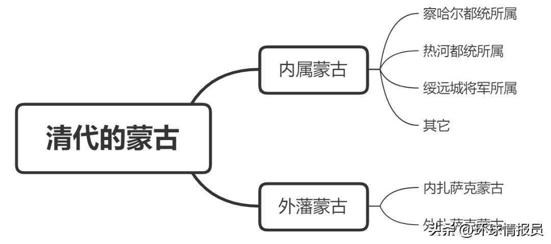 二者统称外藩蒙古,再加上直属清廷的内属蒙古,就构成了清廷对蒙古地区统治架构的全貌。