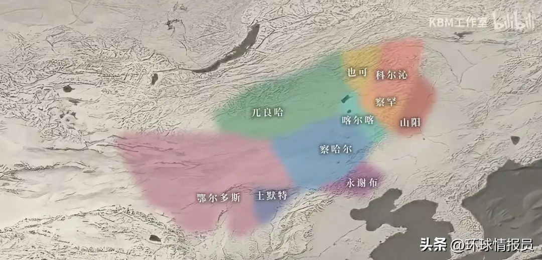 ▲喀尔喀分裂,主体外喀尔喀留在漠北(图片@KBM工作室)