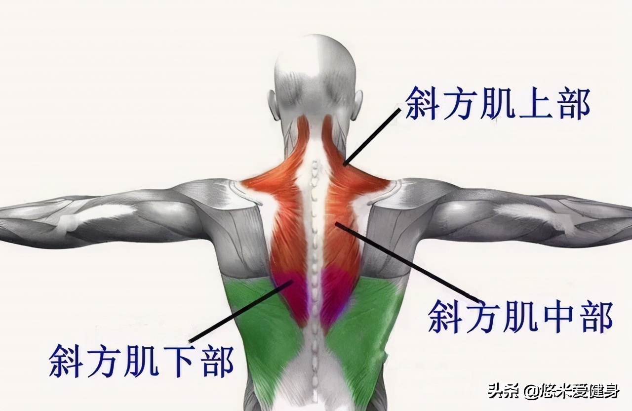 而整个斜方肌还有中部和下部,重点锻炼的就是这两个部位,这样才能让你的背部挺直。
