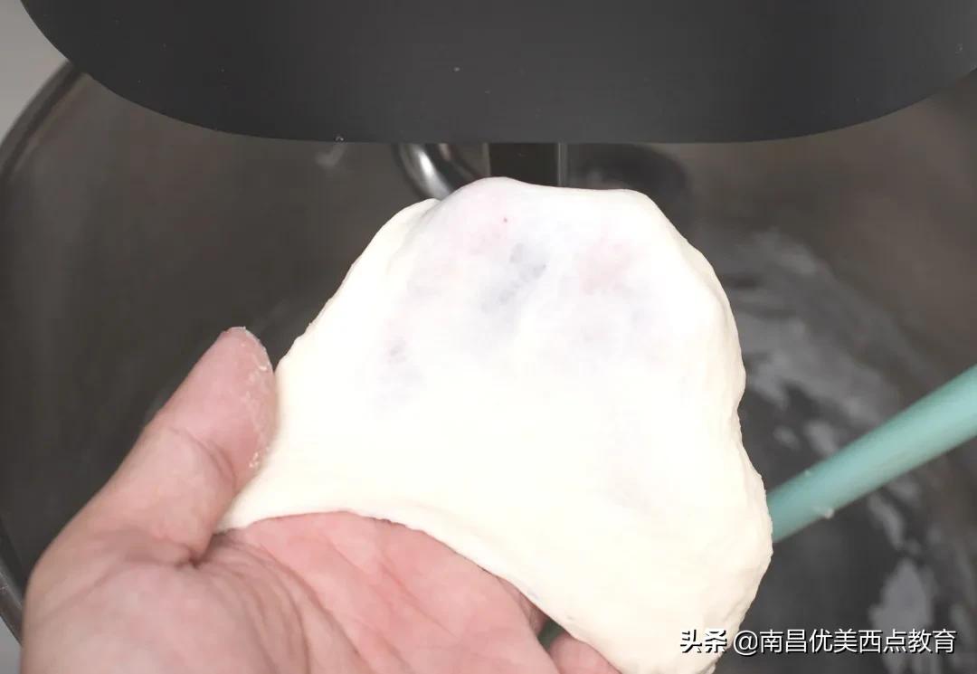 No.3 | 逐渐成团后我们开启中高速揉面,打至7成筋度即可,不需要出手套膜